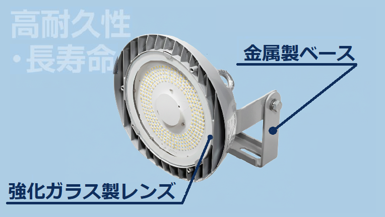 器具は金属製のベース*、照射レンズには強化ガラスを採用。耐久性も向上し、長寿命を実現しました。